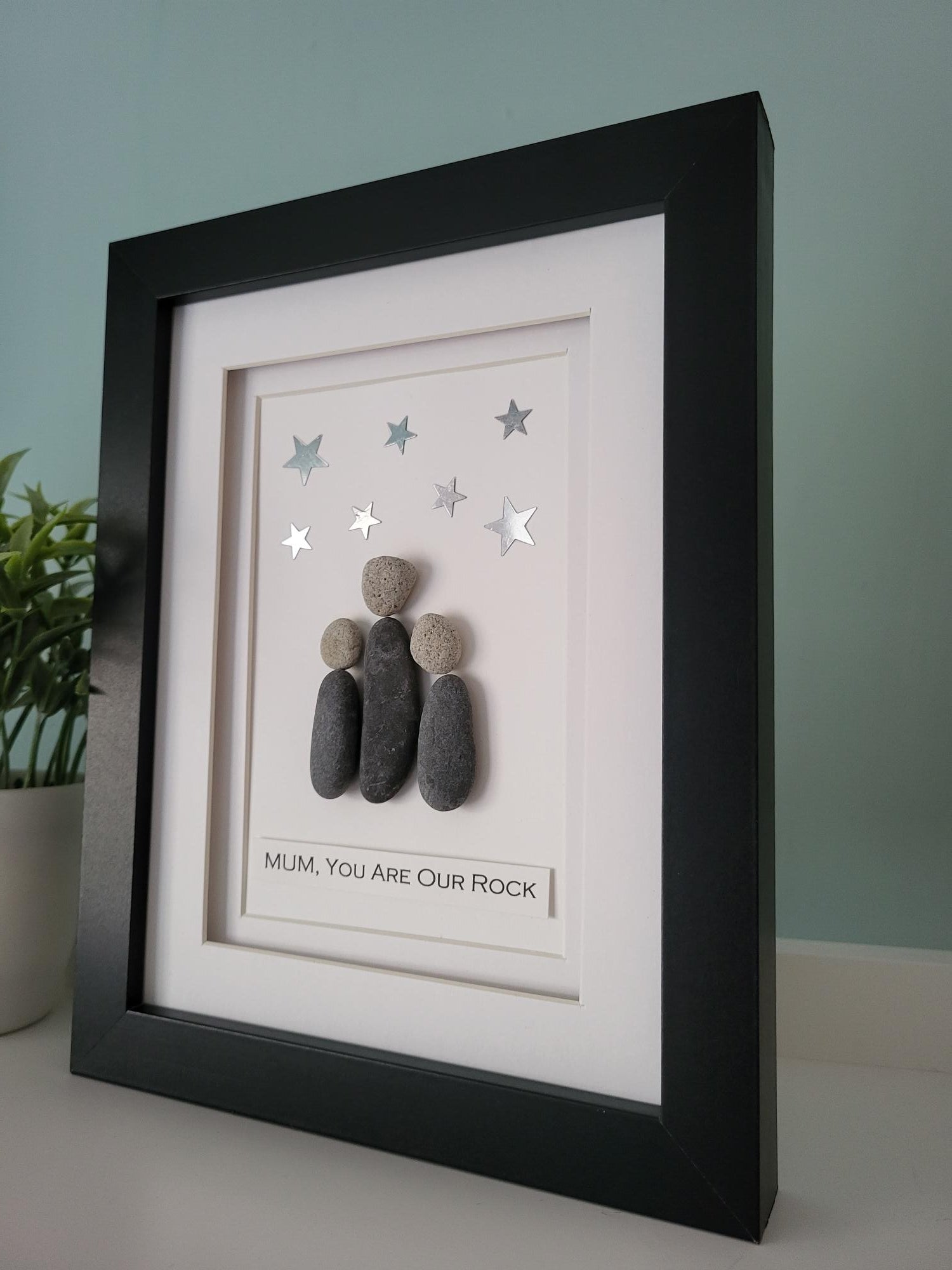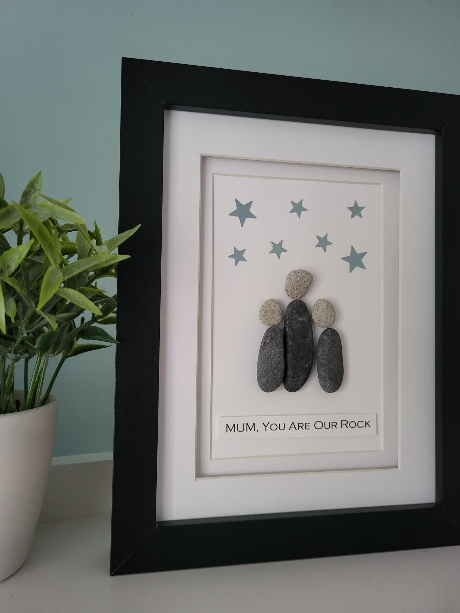 This sentimental gift is perfect to should your Mum how much she means to you stating "Mum, You Are Our Rock"